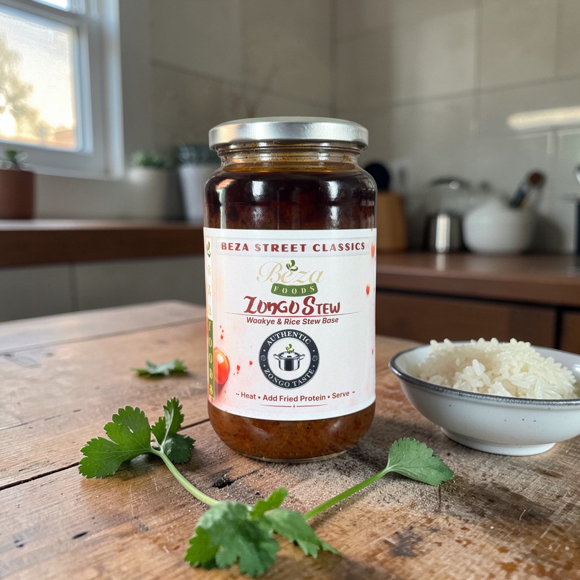 Beza Foods Zongo Stew is a rich Ghanaian stew base inspired by the iconic Zongo-style waakye stew. Deep, savoury and comforting, it brings bold street-style flavour to the table with very little effort. Simply heat, add your fried protein, and serve for a meal that feels soulful, hearty and full of character.